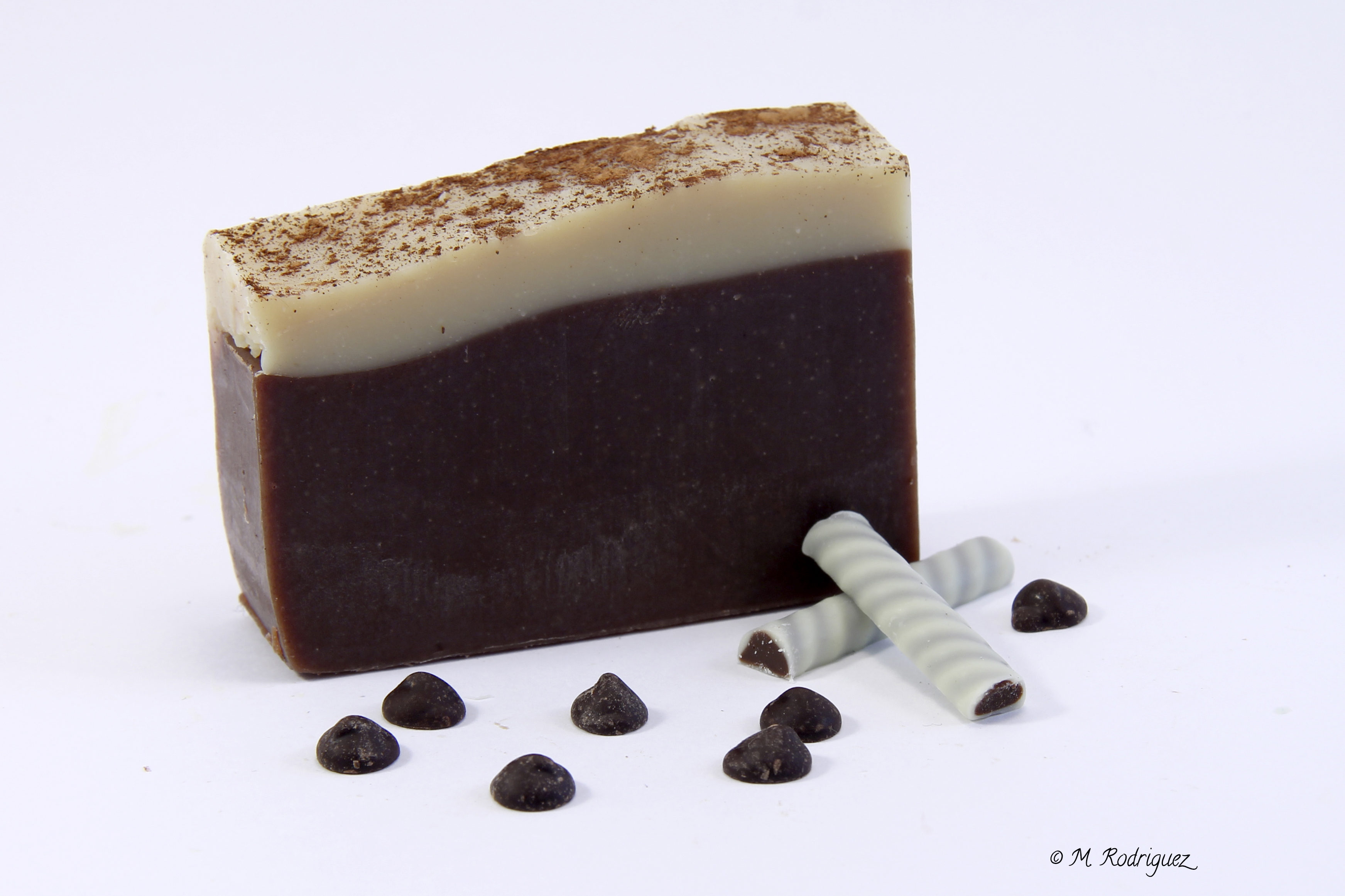 - Con aceite de oliva virgen, almendras, coco, manteca de karité y cacao en polvo.